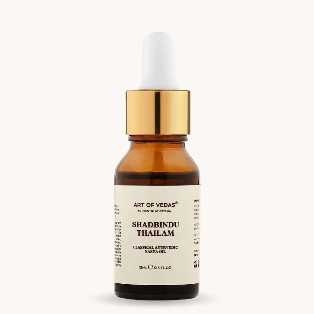 Kada su vam sinusi začepljeni, pritisak raste—što dovodi do pulsirajućih glavobolja, bolova u licu i onog teškog, maglovitog osjećaja u glavi. Tradicionalna Ayurveda prepoznaje da je nos vrata mozga, a Nasya terapija posebno se preporučuje za Shiro Rogas (poremećaje glave). Shadbindu Thailam kombinira nervinske biljke poput Valerijane (smiruje nervoznu napetost) s protuupalnim sladićem i ricinusovim uljem (duboko prodirućim) kako bi se riješio uzrok glavobolja—čišćenjem začepljenja, smanjenjem upale i smirivanjem živčanog sustava za trajno olakšanje.